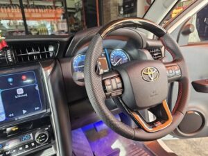 ชุดแต่งรถโตโยต้าฟอร์จูนเนอร์ ร้านอุปกรณ์แต่งรถชลบุรี ศูนย์รวมอุปกรณ์แต่งรถ แต่งรถสวย หุ้มเบาะรถ พรมปูพื้นรถ ลายไม้ลายเคฟล่า ครบวงจร